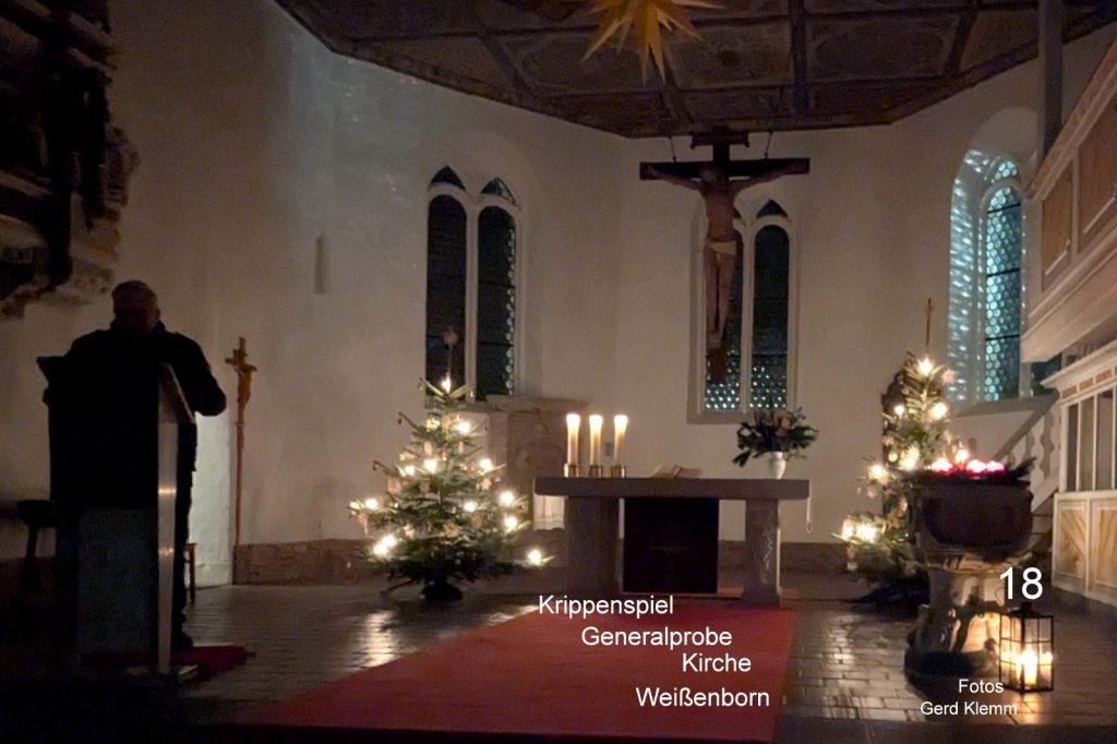 Liebe Interessenten vom Adventskalender. In diesem Jahr öffnen sich die Türchen nun schon zum 17. Mal. Wir freuen uns über die Bereitschaft so vieler wieder aktiv etwas beizutragen, sodass wir in diesem Jahr wieder alle Türchen unseres lebendigen Adventskalenders füllen konnten. Beginn ist jeweils 18:00 Uhr. Andere Anfangszeiten sind nur in Verbindung mit kirchlichen Veranstaltungen und entsprechend ausgewiesen. Bitte informieren Sie sich gegebenenfalls in den Schaukästen.